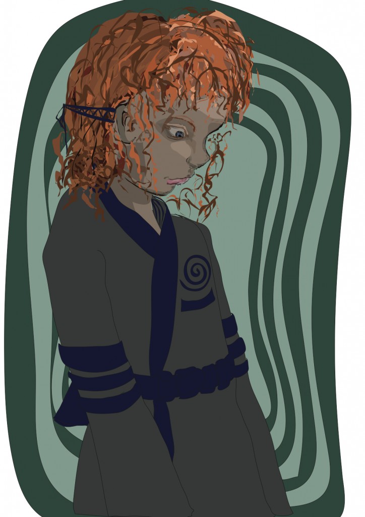 A time traveller. Though the gi-style top she’s wearing is an indication of her mother’s particular sense of fashion, not a clue  about where she’s been.